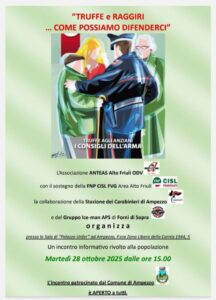 La FNP CISL Alto Friuli ha sottolineato l’importanza di fare rete tra cittadini, istituzioni e forze dell’ordine, ricordando che la prevenzione nasce dalla conoscenza e dalla condivisione.
